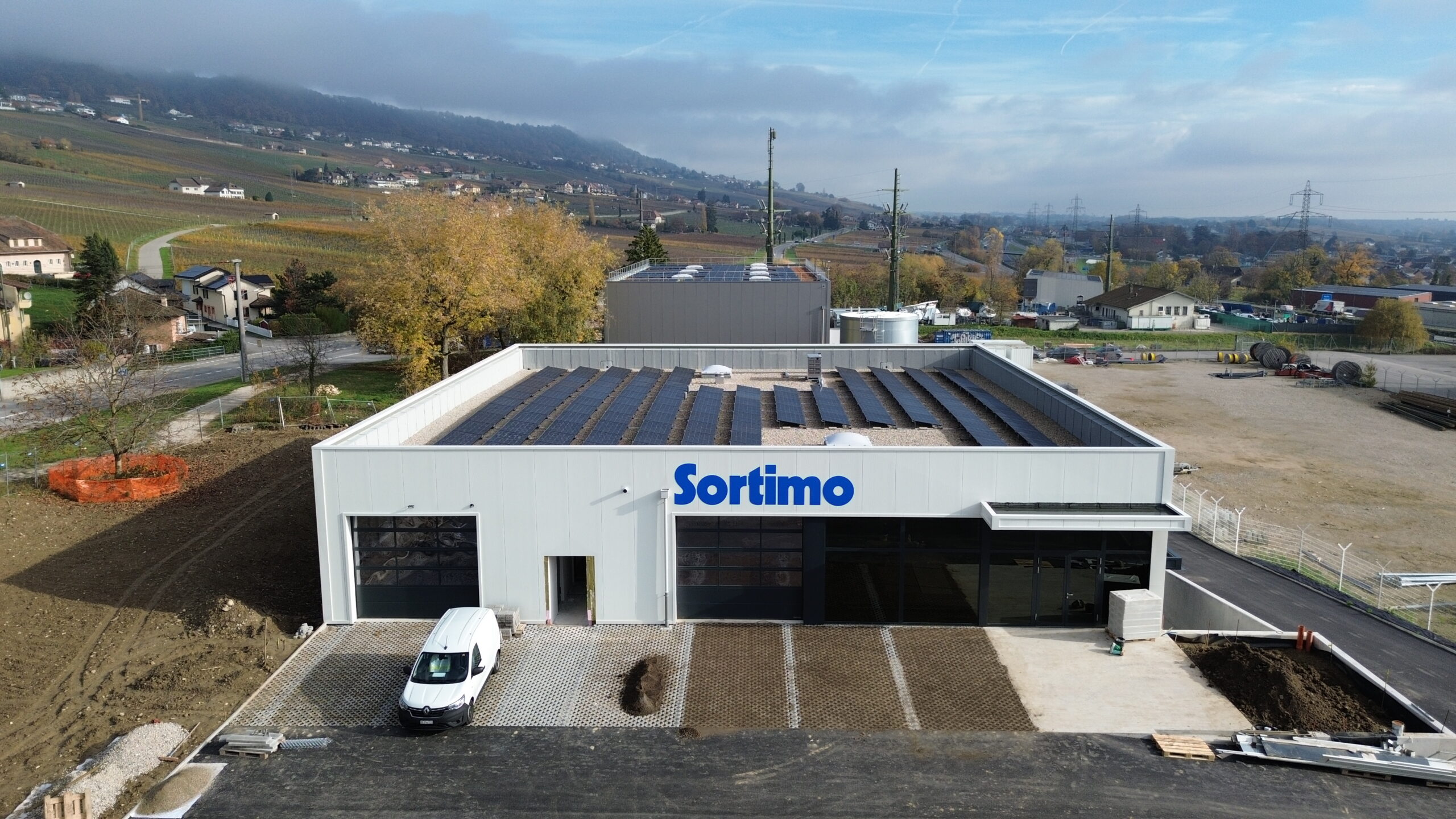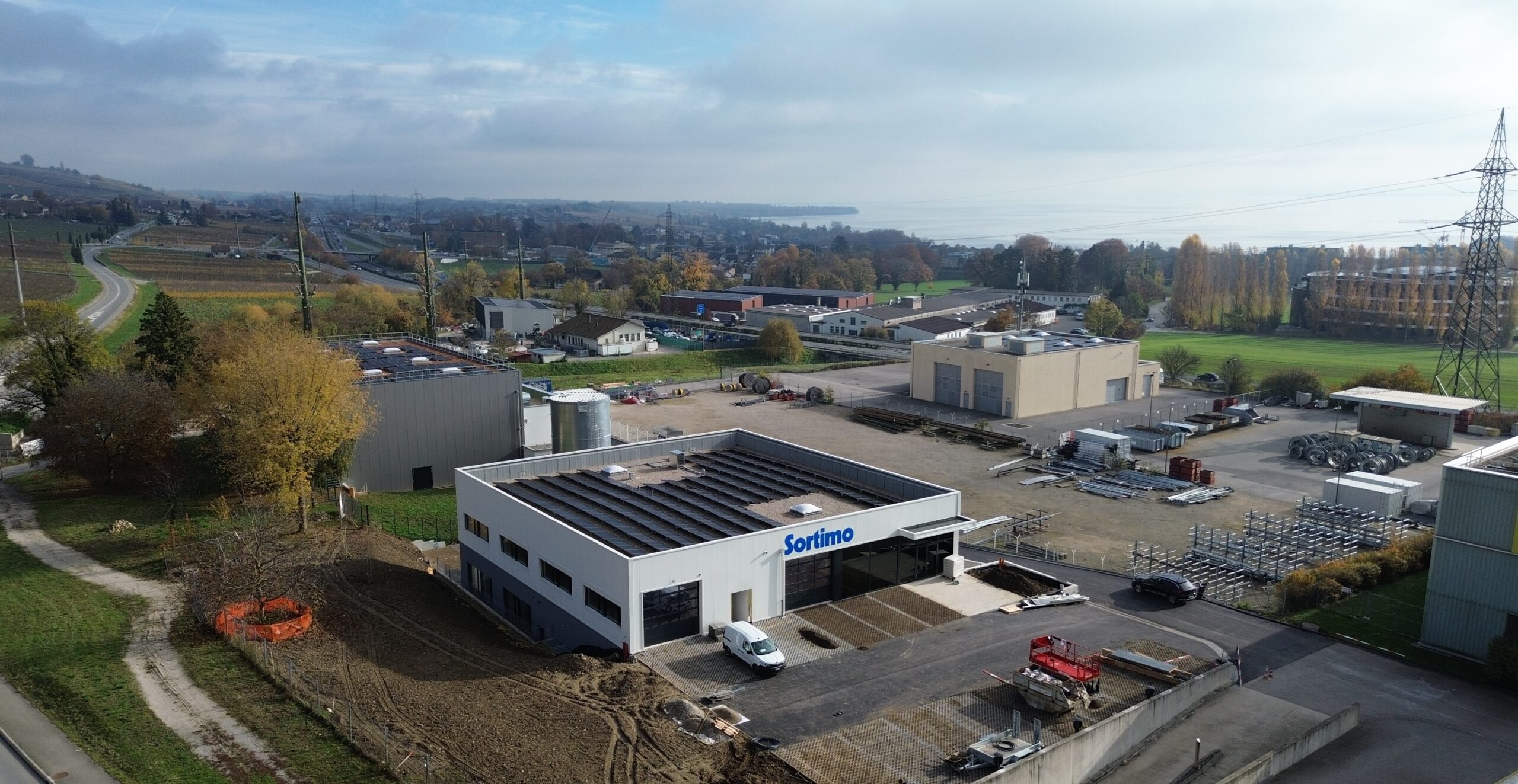 Situé à Rolle, à deux minutes de l’A1 entre Genève et Lausanne, Etraz Park réunit deux programmes professionnels au sein d’un même site. Pour Everial SA (https://www.everial.com/), le complexe accueille un bâtiment d’archivage avec son annexe administrative et technique — dédié à la gestion documentaire sécurisée (physique et numérique). Des mesures techniques spécifiques ont été intégrées au projet, notamment un système de sprinkler / bassin tampon pour la protection incendie des archives sensibles. À proximité directe, Sortimo Walter Rüegg SA (https://sortimo.ch/) a installé sa nouvelle succursale romande, rassemblant showroom, conseil et atelier pour l’aménagement de véhicules utilitaires.